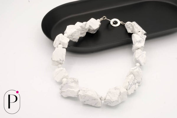Geregen halsketting met grove en fijne Howliet. Afgewerkt met een mooi sterling zilver slot.
