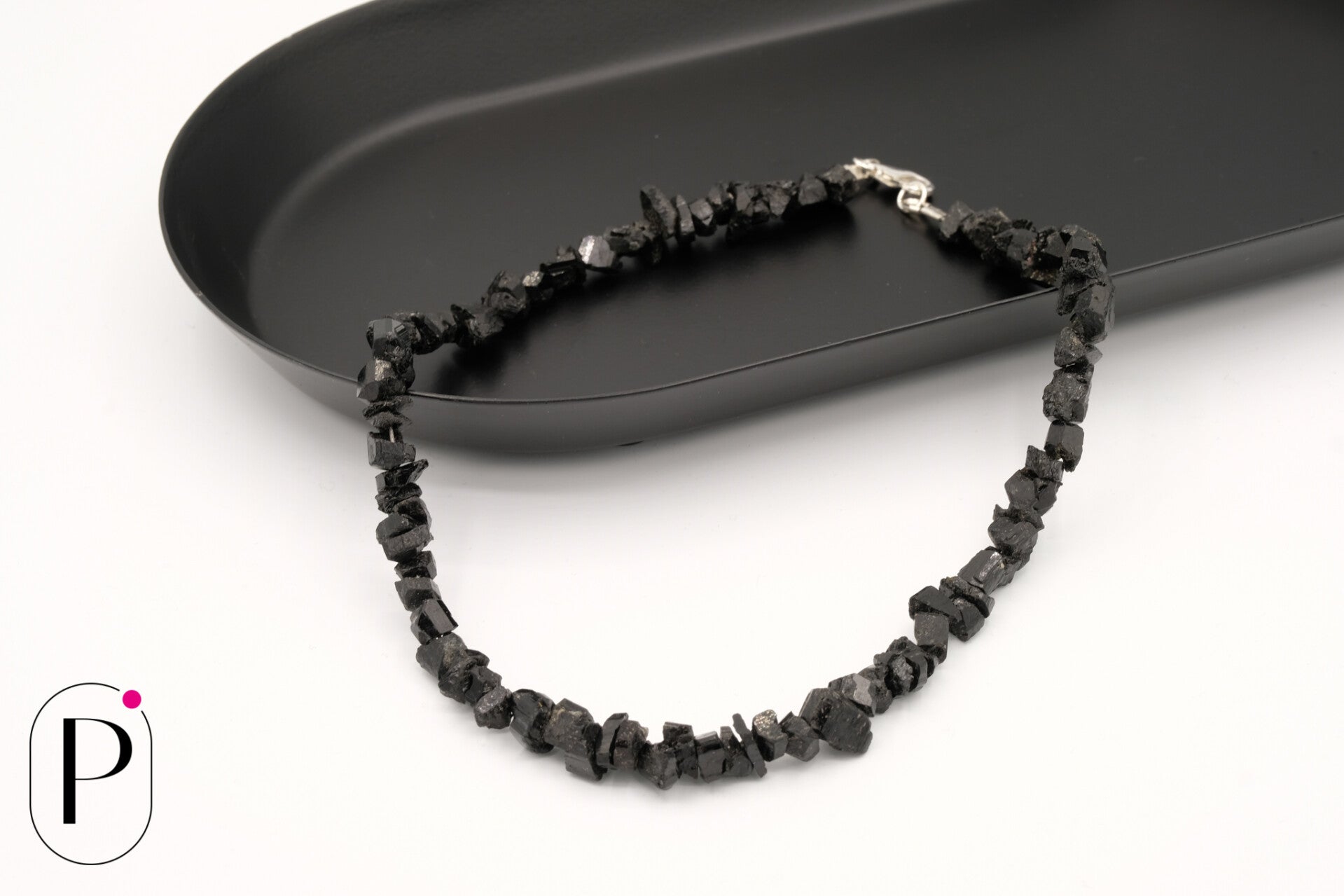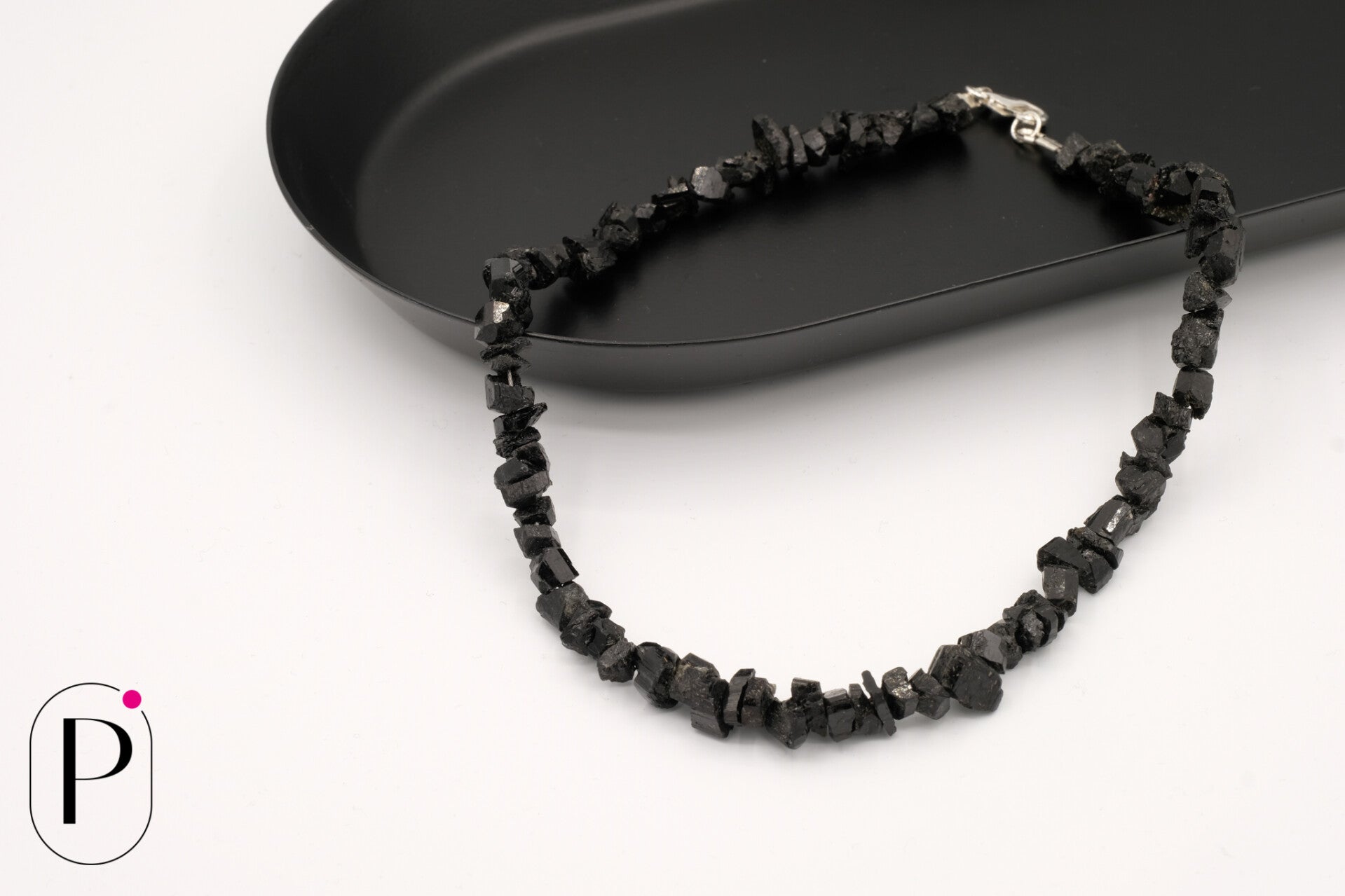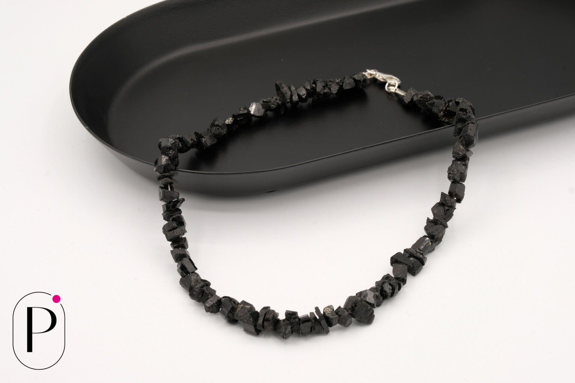 Fijne halsketting met zware Toermalijn en afgewerkt met een sterling zilver karabijnslot.