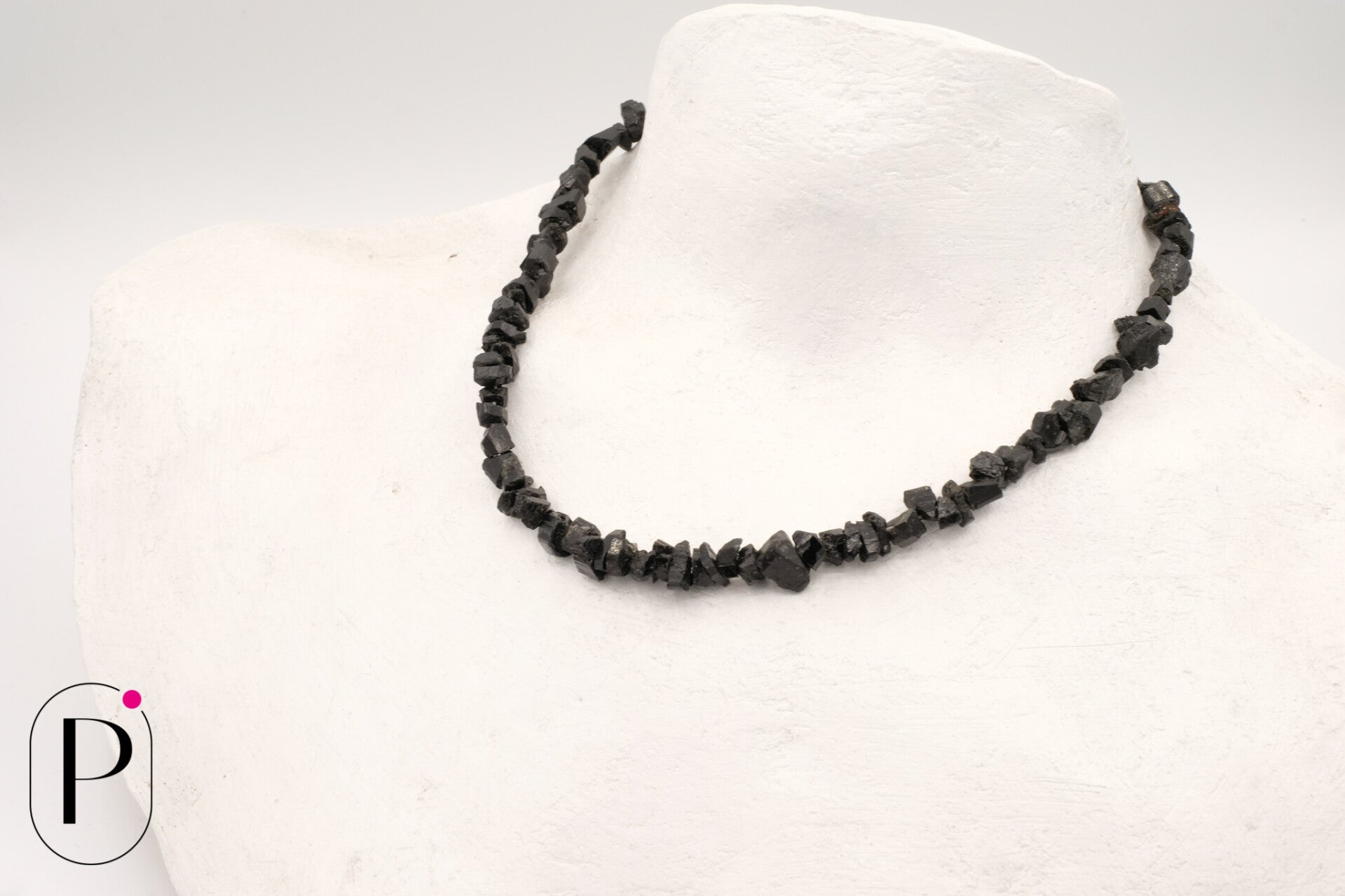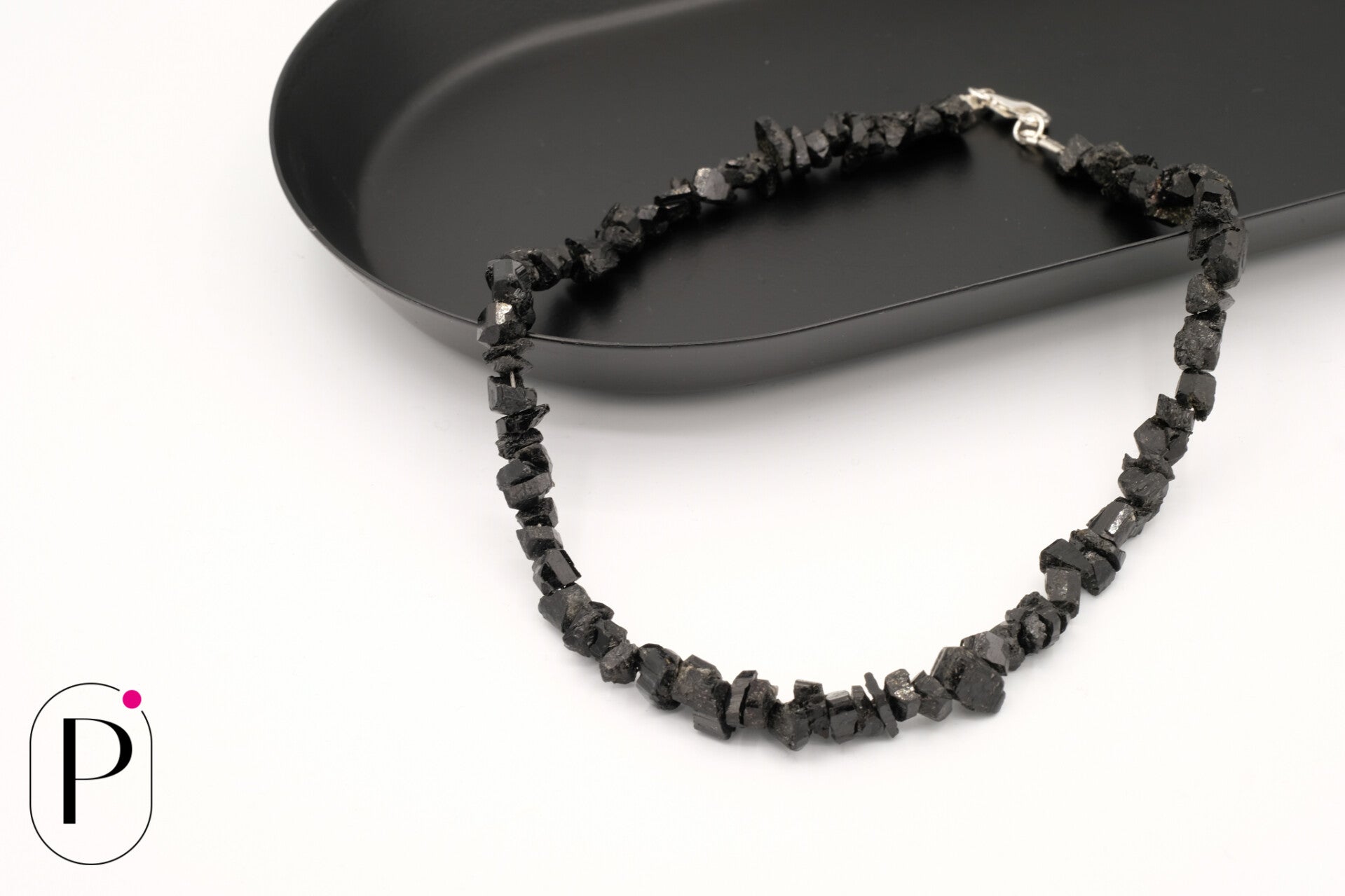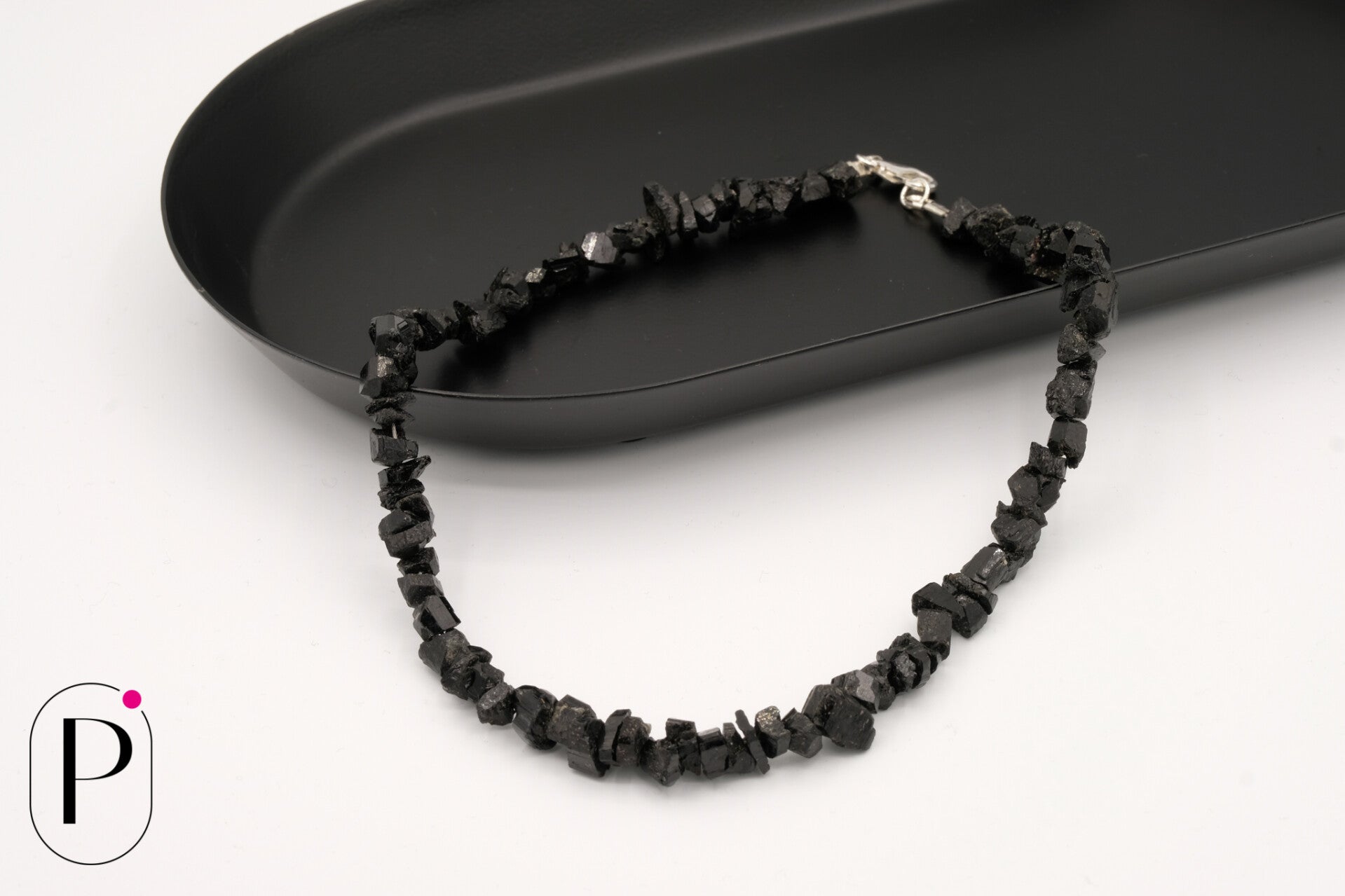 Fijne halsketting met zware Toermalijn en afgewerkt met een sterling zilver karabijnslot.