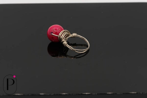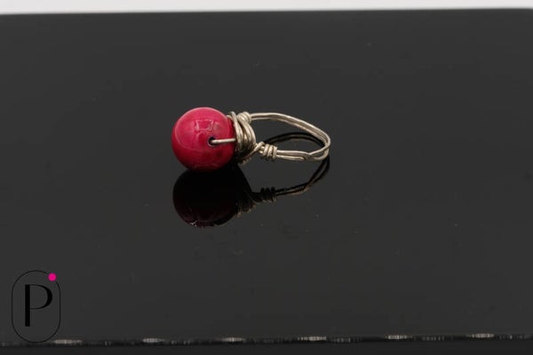 Ring gemaakt van sterling zilverdraad afgewerkt met een roze parel.