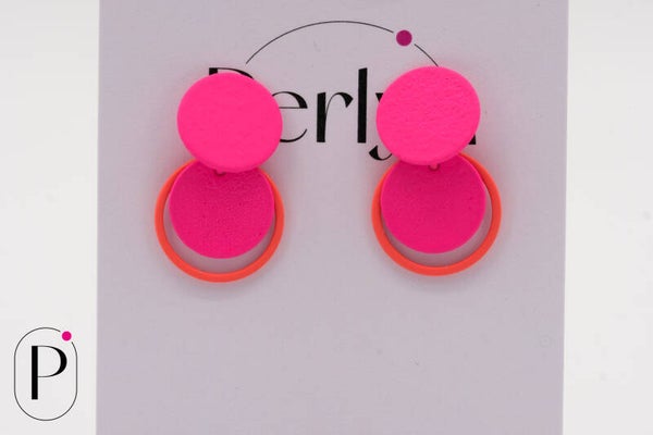 Korrelig oorstekers met daaraan oneffen schrijfjes (12mm) en cirkels (15mm). Allemaal gemaakt van metaal met een laagje rubber over en anti-allergisch.