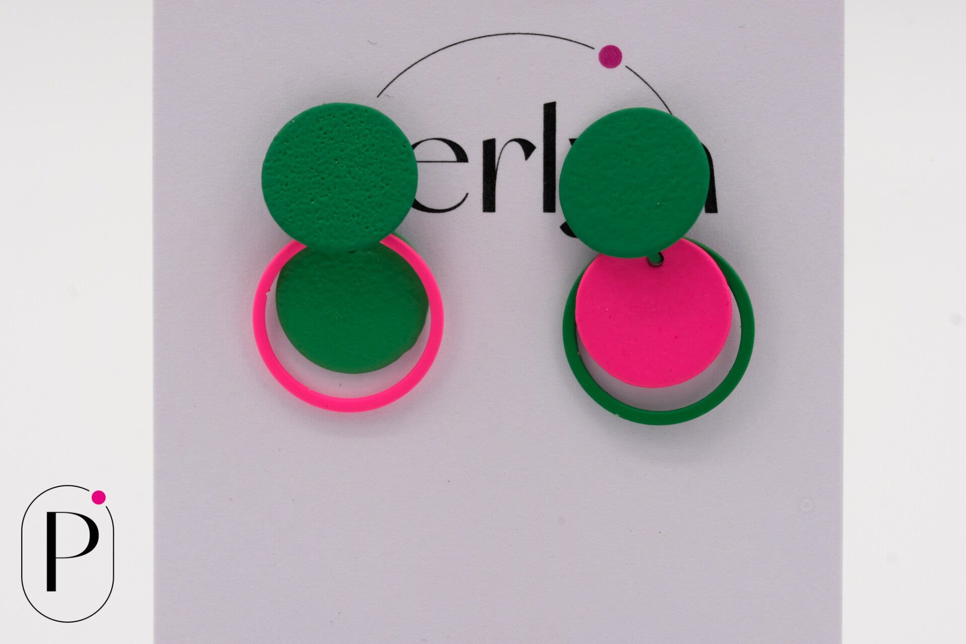 Kleuren: grasgroen en fluo roze.