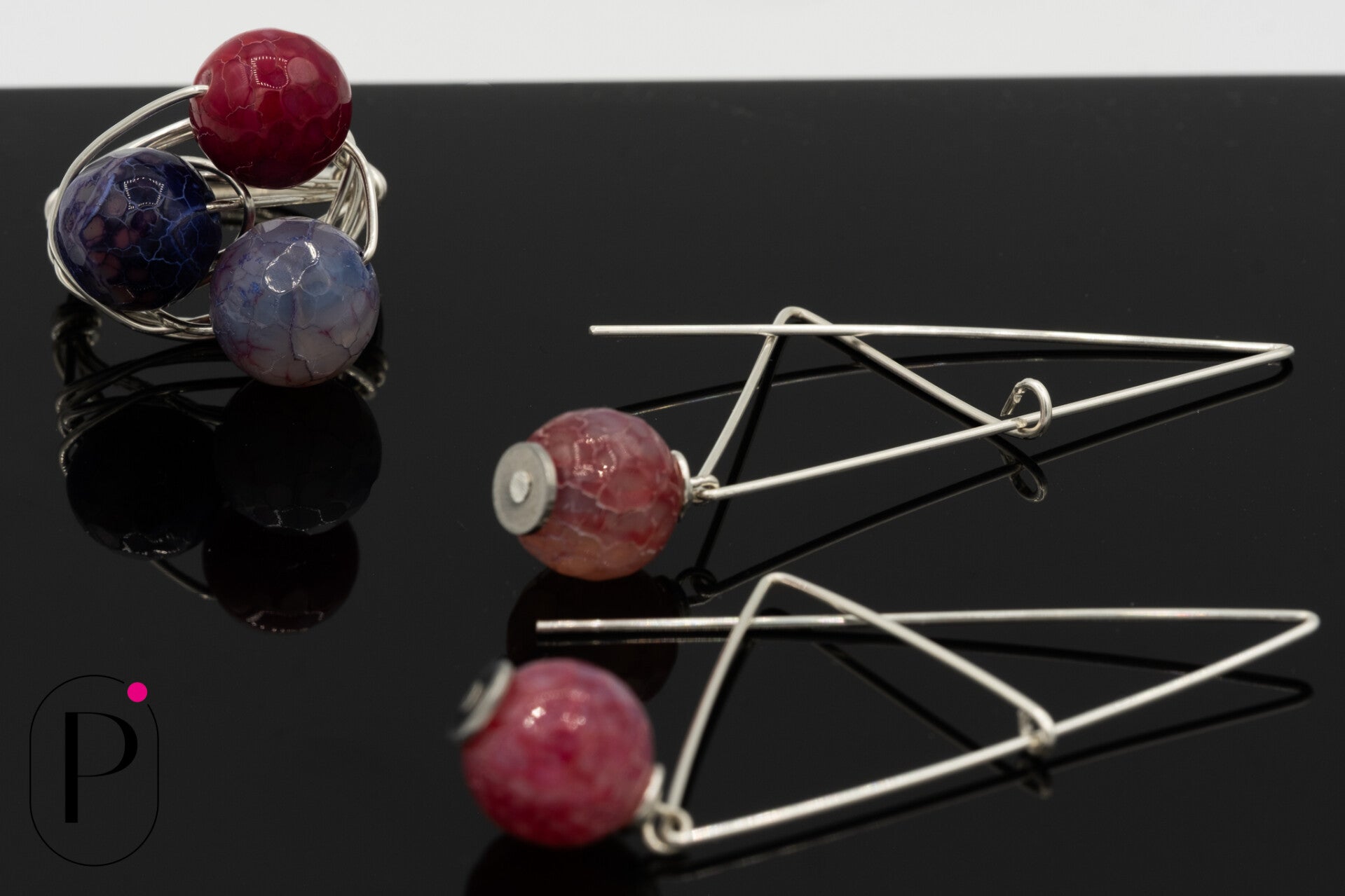 Oorbellen gemaakt uit zilverdraad met daarhaan glazen facetkralen. Speciaal op maat gemaakt.